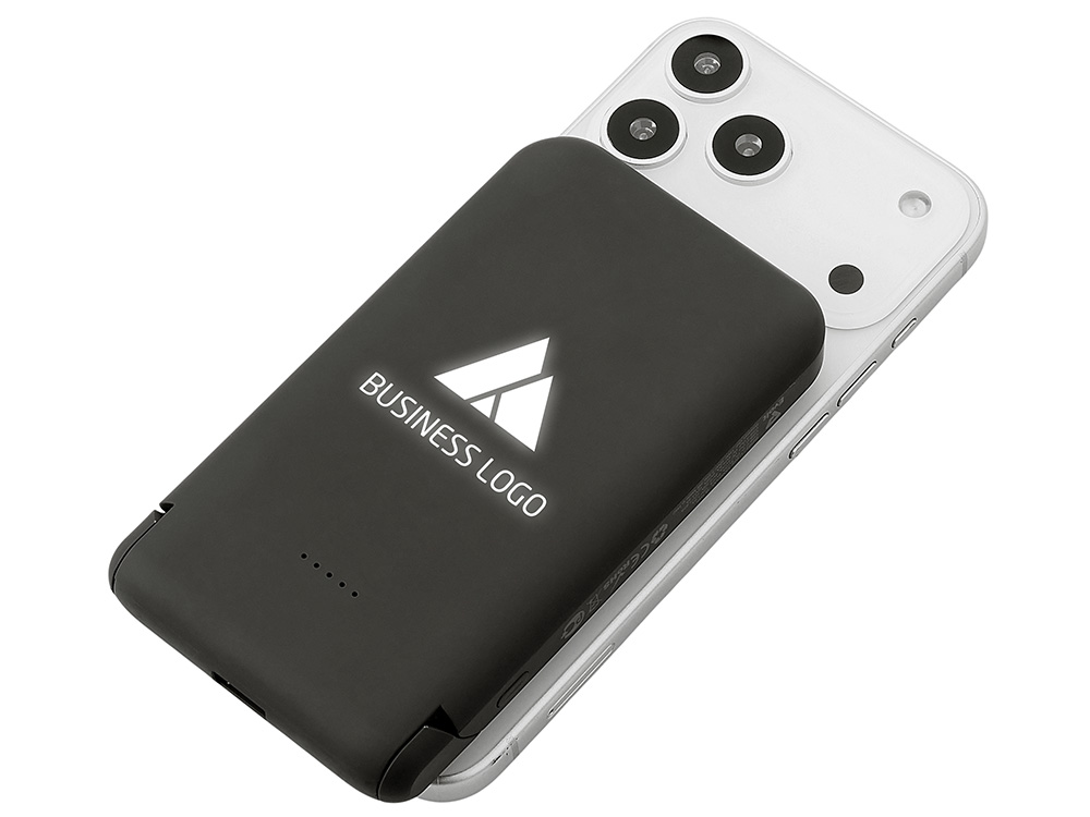 Беспроводной внешний аккумулятор Magflash — это не просто запас энергии, а стильный и умный аксессуар для современного ритма жизни. С ёмкостью 10000 мАч и быстрой зарядкой он надежно обеспечивает энергией смартфоны и современные гаджеты USB-C , обеспечивая до нескольких полных циклов зарядки. Поддержка беспроводной зарядки мощностью 15 Вт позволяет быстро восполнять энергию без проводов — просто положите устройство на поверхность, к iPhone повербанк примагнитится, что значительно облегчает его использование. Встроенный держатель-подставка превращает аккумулятор в удобную подставку для телефона во время зарядки или просмотра видео. А светодиодная подсветка логотипа создаёт атмосферу — работает как индикатор заряда и стильный акцент вашего бренда. Идеально подходит на каждый день. Мощность 15 Вт + 10000 мАч — быстрая зарядка (включая беспроводную) и долгий запас энергии для всех ваших гаджетов. Встроенная подставка — удобно смотреть видео, принимать звонки или работать, пока телефон заряжается. Светодиодная подсветка логотипа — стильный визуальный акцент и индикатор состояния заряда. Универсальность и практичность — идеален для поездок, работы, вечеринок и повседневного использования.