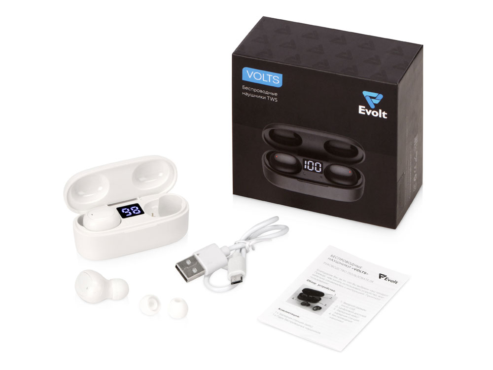 Компактные беспроводные наушники с отличным звуком и функционалом. Наслаждайтесь любимыми композициями в течение 4 часов на одном заряде. Кейс обеспечит дополнительно 3 полных заряда наушников (итого 16 ч). В кейсе расположен цифровой дисплей, чтобы видеть текущий уровень заряда. Наушники Volts можно использовать как гарнитуру. Многофункциональная кнопка на наушниках позволяет принимать/отклонять звонки, вызывать голосового помощника, управлять громкостью и воспроизведением. Отдельно стоит выделить практически мгновенное включение и подключение наушников. При извлечении из кейса наушники автоматически включаются, соединяются между собой и подключаются к смартфону по Bluetooth (если это не первое подключение к Вашему устройству). В комплекте – 2 наушника, зарядный кейс, зарядный кабель, запасные амбушюры и инструкция. - Отличный звук, наличие басов. - Наличие микрофона. - Мгновенное автоматическое включение и подключение. - Воспроизведение до 4 часов (16 часов с учетом зарядного кейса). - Многофункциональная кнопка для управления звонками, музыкой и голосовым ассистентом (напр. для Apple - Siri).