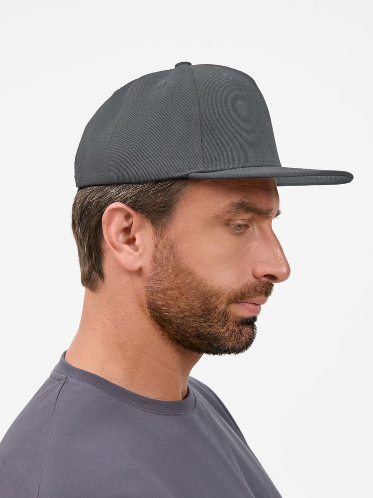 Бейсболка с прямым козырьком из плотного фактурного полиэстера отлично держит форму и не выцветает.