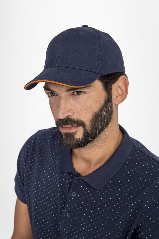 Бейсболка Buffalo, темно-синяя с неоново-оранжевым купить оптом и в розницу с нанесением логотипа в Воронеже