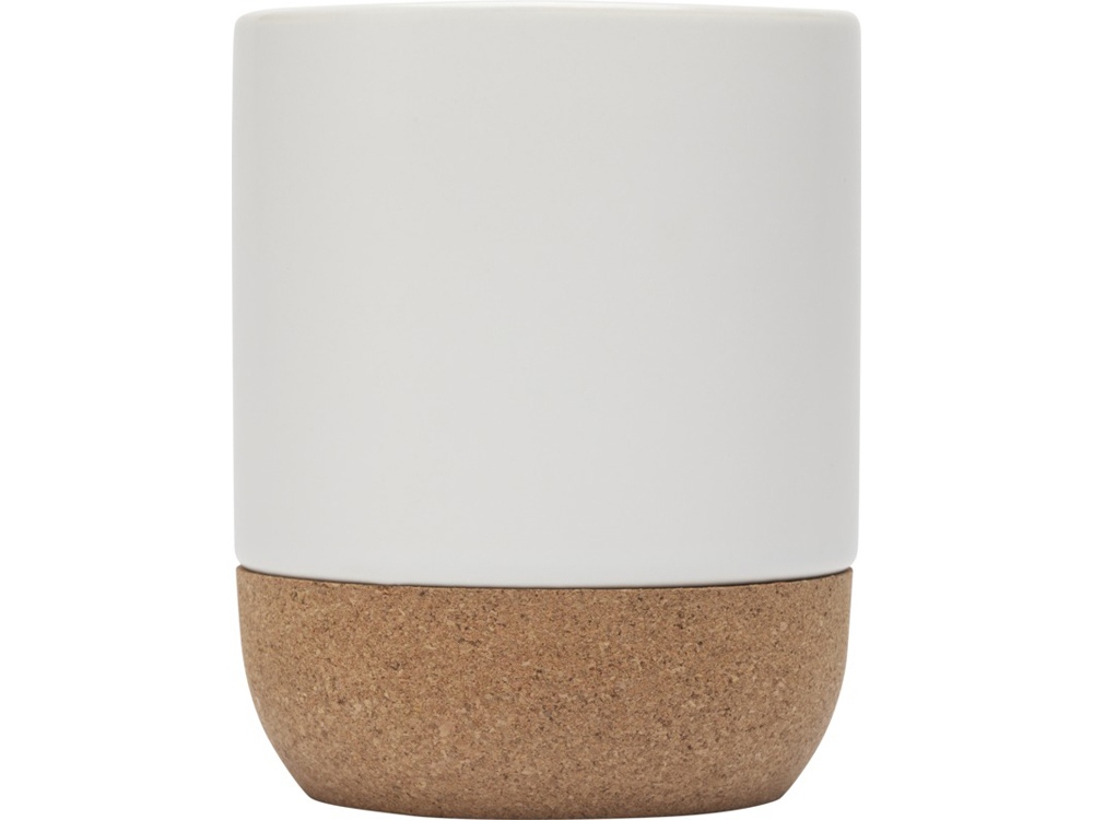 Керамическая кружка с пробковым основанием и внешним покрытием, подходящим для сублимационной печати. Внутренняя и внешняя поверхности выполнены в глянцево-белом цвете. Рекомендуется мыть вручную в тёплой воде с мягкими моющими средствами. Поставляется в подарочной коробке из переработанного картона. Объём — 300 мл. Состав: 90% керамика, 10% пробка.