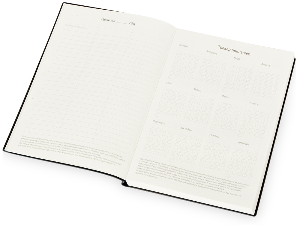 Supreme от Lettertone — бизнес-блокнот с гибкой обложкой, которая одновременно надежно защищает бумажный блок и обеспечивает изделию прочность. Бумажный блок выполнен из бумаги, полученной из древесины из специальных восполняемых лесных ресурсов, имеет сертификат FSC, международной некоммерческой организации лесного попечительского совета. Линовка — недатированный ежедневник, а на первых страницах вы встретите специальные листы для постановки целей на год и подведения итогов, а также другие трекеры. Обложка выполнена из двух видов искусственной кожи: рифленого, в тонкую полоску, основного материала и патча с покрытием софт-тач, который очень приятен на ощупь. Упаковка — шубер из крафта. - 128 листов - бумага из восполняемых лесных ресурсов - ляссе для быстрой навигации - трекеры и специальные страницы для планирования