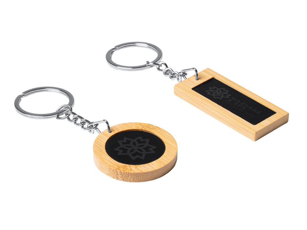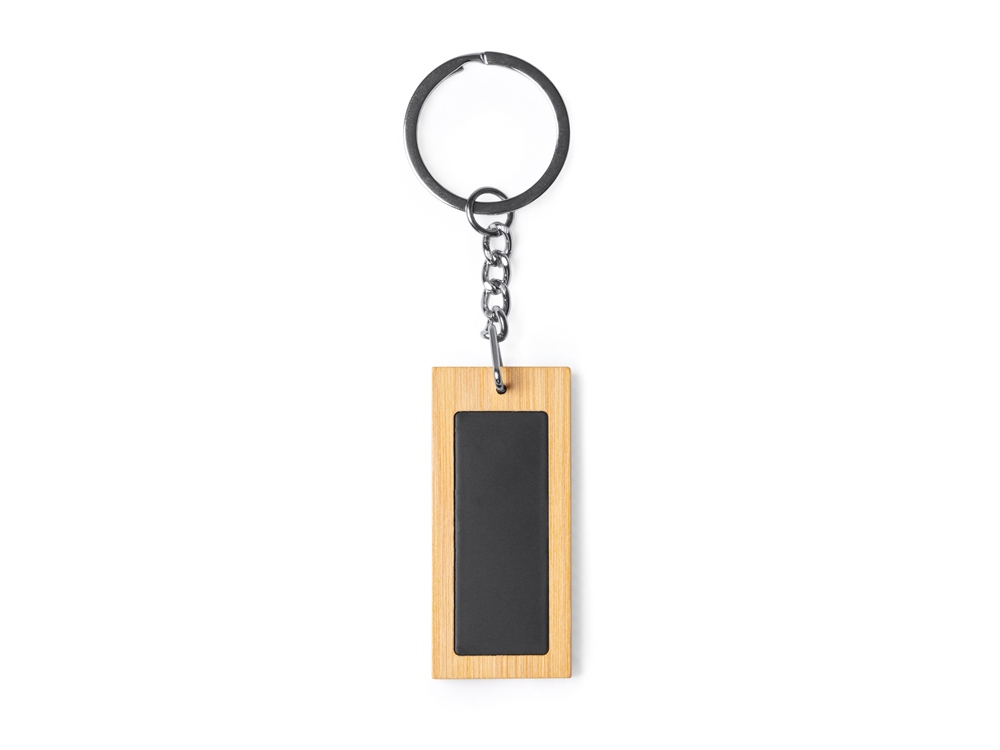 Прямоугольный брелок из бамбука и стали. Идеально подходит для лазерной гравировки.