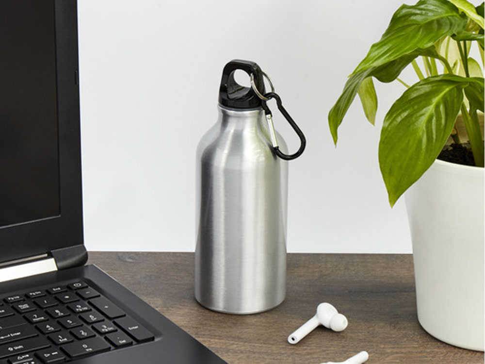 С этой прочной, но легкой бутылкой из переработанного алюминия, сертифицированного по стандарту RCS, объемом 400 мл вы никогда не будете испытывать жажду. Это незаменимая вещь для тренировок, однодневных поездок или работы в офисе. Одностенная бутылка Oregon с закручивающейся крышкой имеет достаточно места для нанесения любого логотипа. Надежно закрепите прилагаемый карабин (не подходит для скалолазания) на сумке, чтобы не потерять его. Без содержания BPA, протестировано и одобрено согласно немецкому законодательству о безопасности пищевых продуктов (LFGB) и проверено на содержание фталатов согласно нормам REACH. 100 % переработанный алюминий составляет 87 % бутылки, а остальная часть изготовлена из пластика.