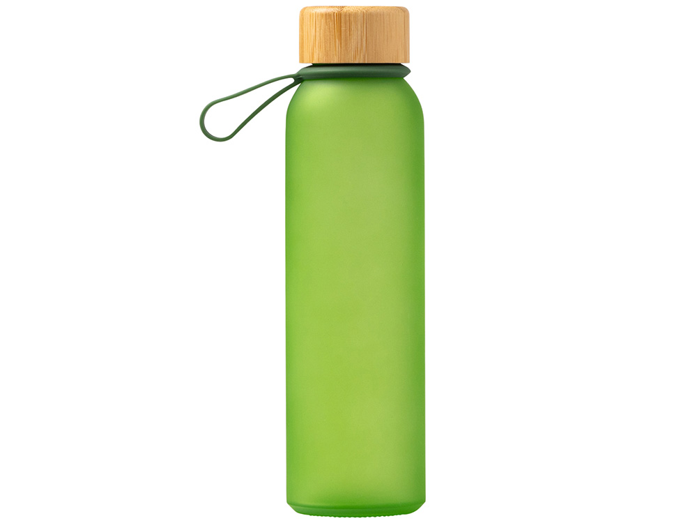 Полупрозрачная бутылка из переработанного стекла. Бамбуковая крышка с держателем. Объём: 500 мл. Поставляется в индивидуальной коробке.