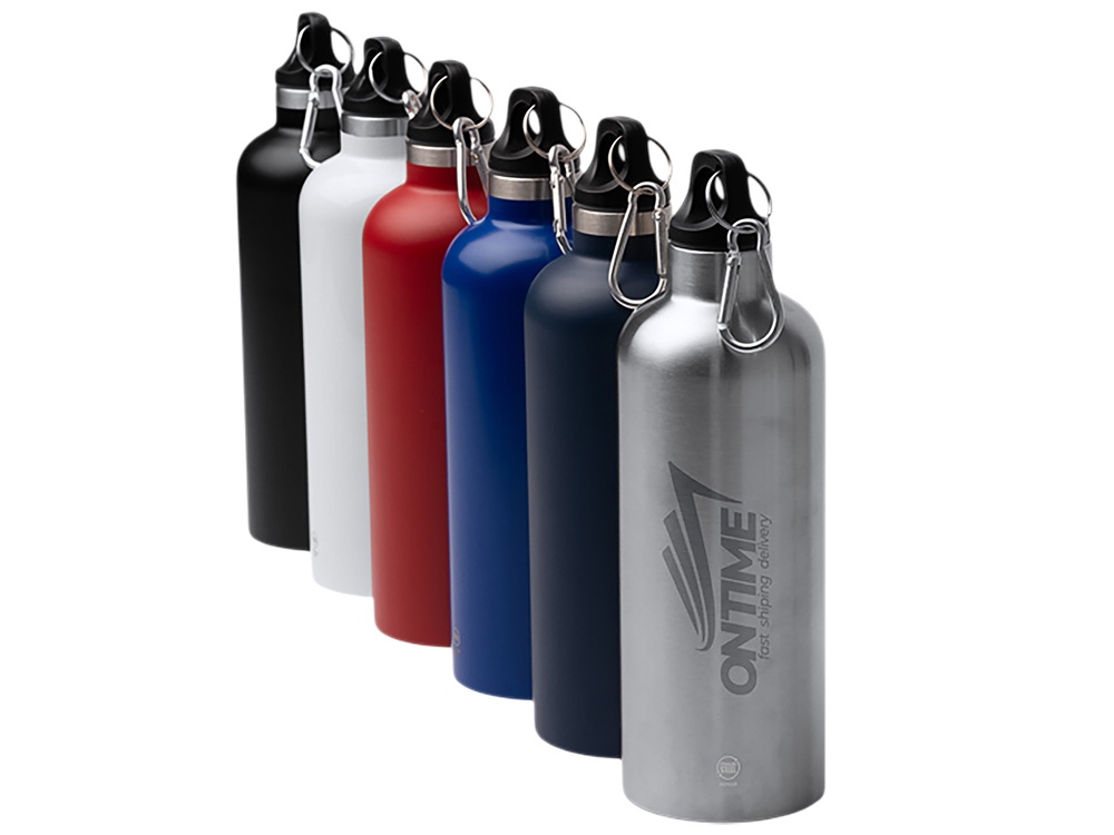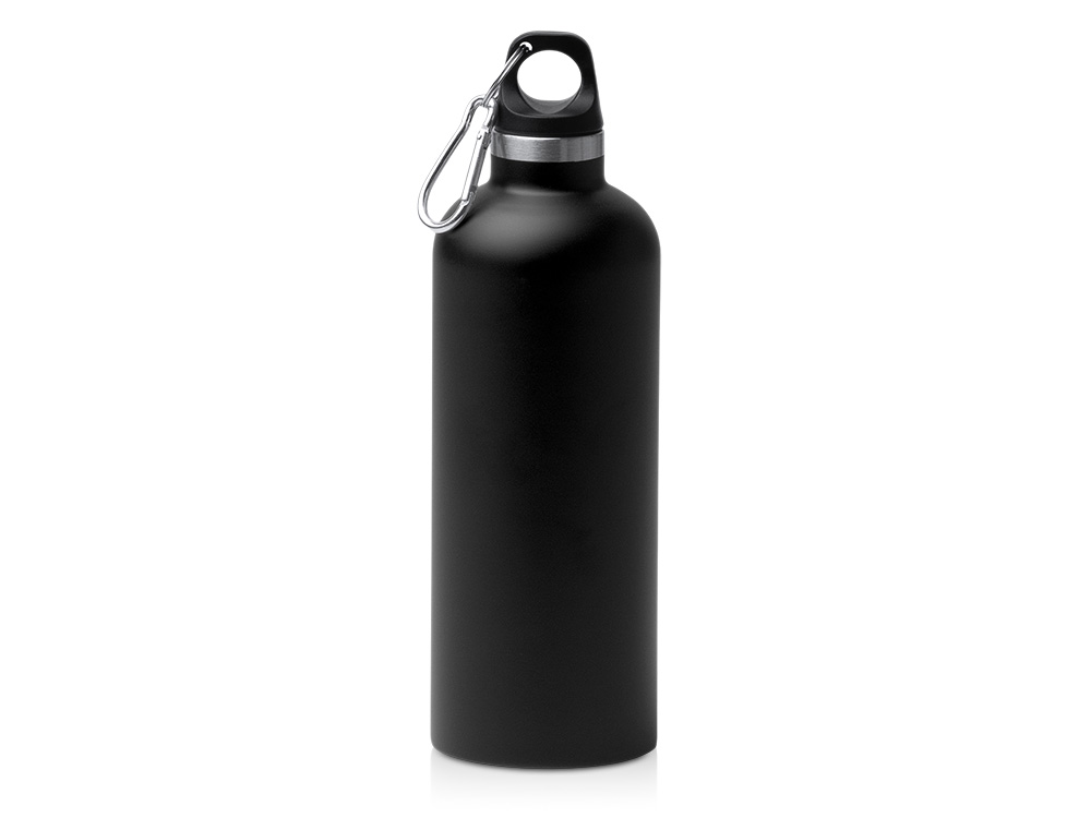 Бутылка LUWAK/ЛЮВАК из переработанной нержавеющей стали с карабином, черный купить оптом и в розницу с нанесением логотипа в Воронеже