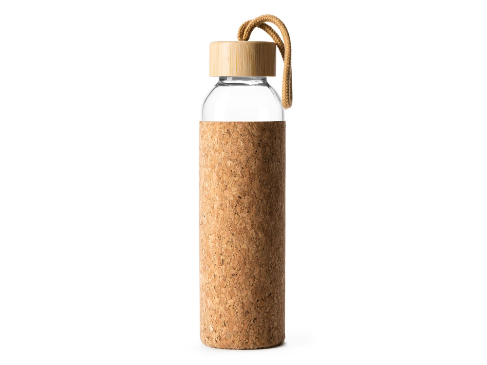 Стеклянная бутылка в чехле из натуральной пробки. Бамбуковая крышка с практичной ручкой для переноски, поэтому вы можете брать ее с собой куда угодно. Емкость 500 мл.
