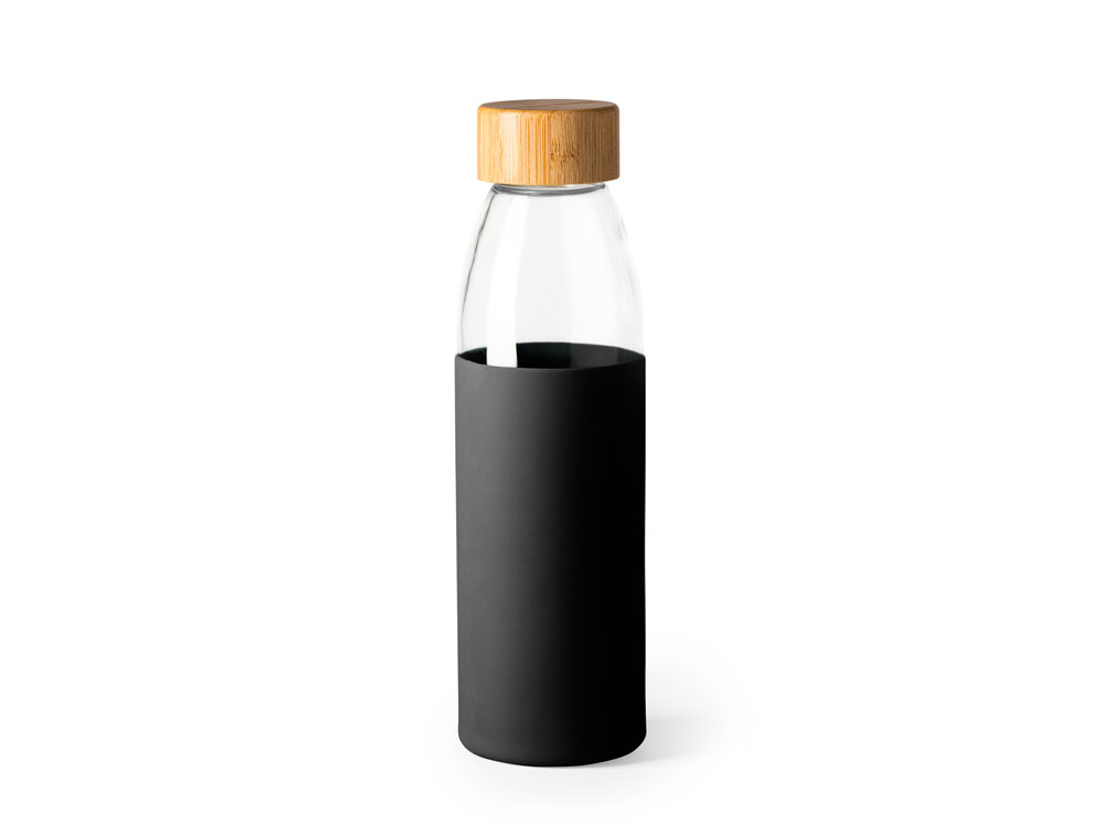 Бутылка стеклянная NAGAMI в силиконовом чехле, 540 мл, прозрачный/черный купить оптом и в розницу с нанесением логотипа в Воронеже