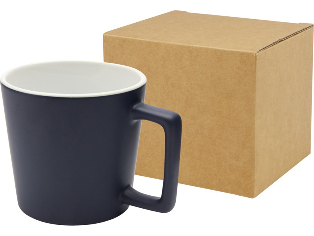 Керамическая кружка с современным дизайном и матовой отделкой. Объем 370 мл. Можно мыть в посудомоечной машине. Поставляется в упаковочной коробке из переработанного картона. Керамика.