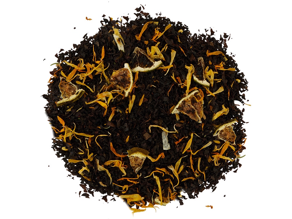 | Состав | черный чай, лепестки календулы, слайсы мандарина, ароматизатор натуральный Глинтвейн, ароматизатор натуральный Мандарин |