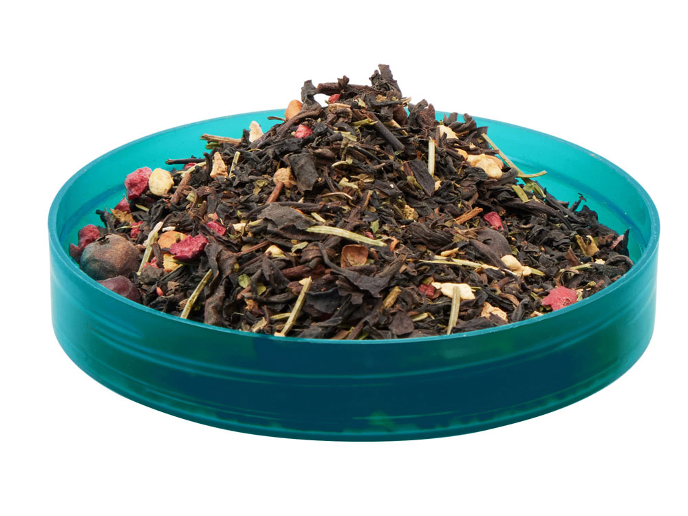 | Состав | чай черный, ягоды можжевельника, лапки пихты, имбирь, малина, клюква, шиповник, гвоздика, мята |