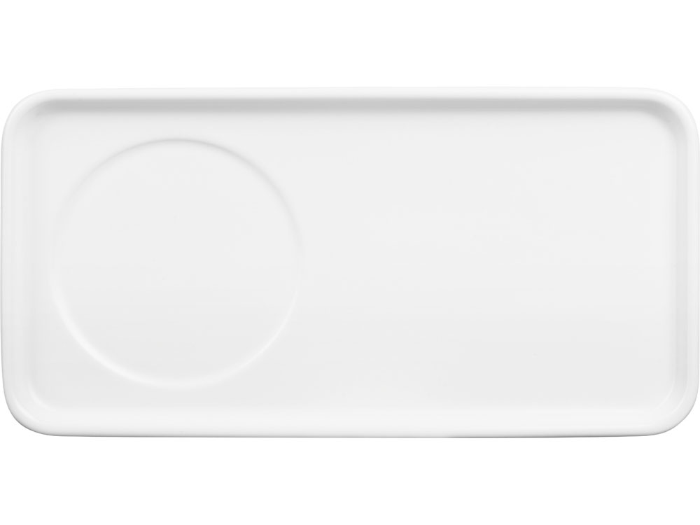 Чайная пара с необычным прямоугольным блюдцем — на нем хватит места не только для чашки, но и для пирожного. Весь силуэт этого комплекта — лаконичный, строгий, прямоугольный, что создает прекрасный фон для нанесения логотипа. Удобство этой чайной пары еще и в том, что для чашки предусмотрена отдельная ниша, которая не даст ей соскользнуть. - большое блюдце необычной формы с местом для чайного пакетика или печенья - кружка белая с двух сторон - удобная ручка - костяной фарфор