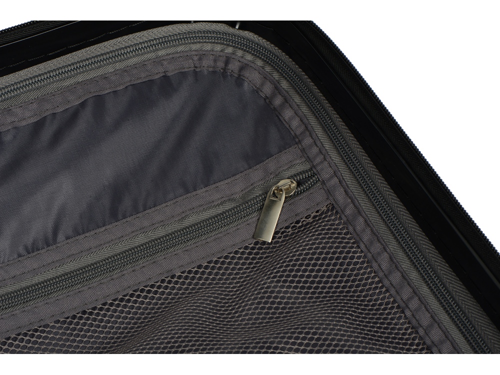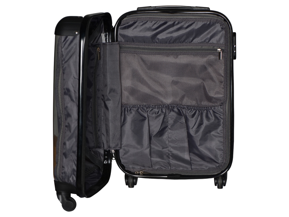 Удобен и незаменим для поездок на любые расстояния, можно брать в салон самолета благодаря компактному размеру, который был специально разработан в соответствии с требованиями большинства авиакомпаний. Одна боковая сторона из прозрачного пластика с возможность размещать бумажную вставку с вашим нанесение, 2 вместительных отделения - одно на молнии с чехлом, второе - с ремнями для фиксации одежды. На подкладке 2 внутренних кармана на молнии для хранения мелочей. - 4 устойчивых колеса вращаются на 360° - Прочный корпус из легкого поликарбоната - Встроенный кодовый замок для большей безопасности - Телескопическая ручка - Защитные накладки на углы против повреждений поверхности - 2 вместительных отделения - Объем 37л