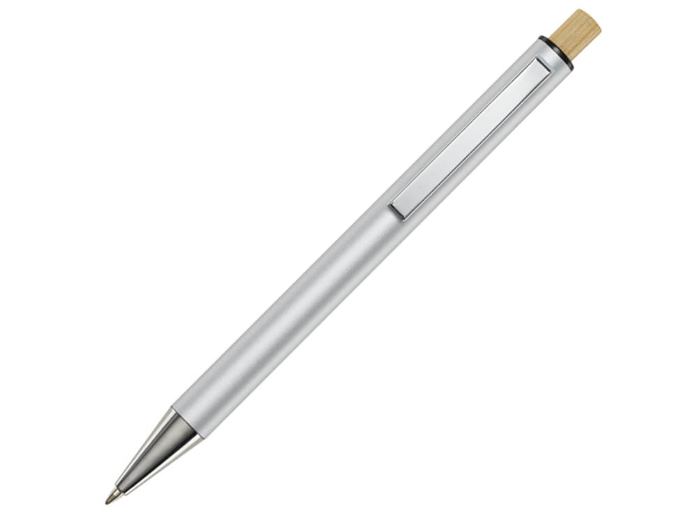 Шариковая ручка Cyrus изготовлена из переработанного алюминия, что требует меньше энергии, чем производство алюминия из сырья. Это также уменьшает количество отходов на свалках и помогает сохранять природные ресурсы для сокращения выбросов парниковых газов. Нажимная кнопка изготовлена из бамбука. Цвет чернил: синий. Длина непрерывной линии: 800 метров. Размер пера: 1,00 мм. Recycled Aluminium.