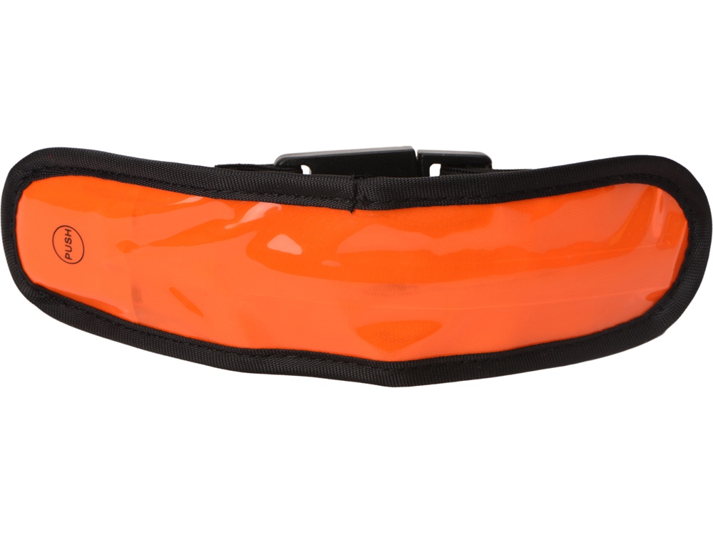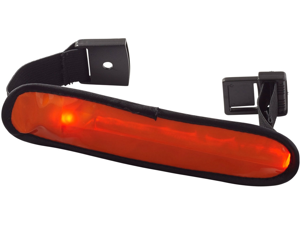Диодный браслет Olymp. Регулируемый эластичный диодный браслет для видимости на улице с кнопкой для переключения режимов мигания, быстрого мигания, обычного света или выключения. Батарейки в комплекте. ПВХ.