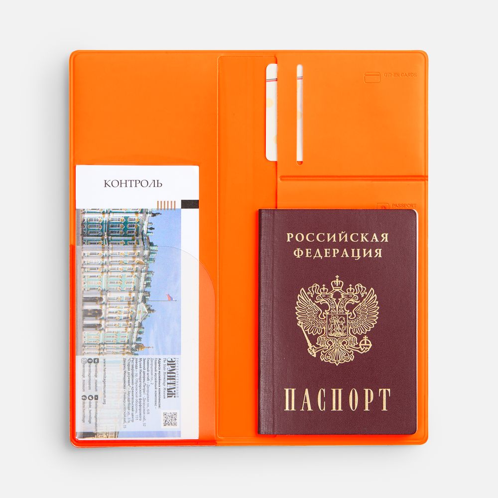 Органайзер имеет 5 отделений: для билетов, паспорта, визиток или кредитных карт.