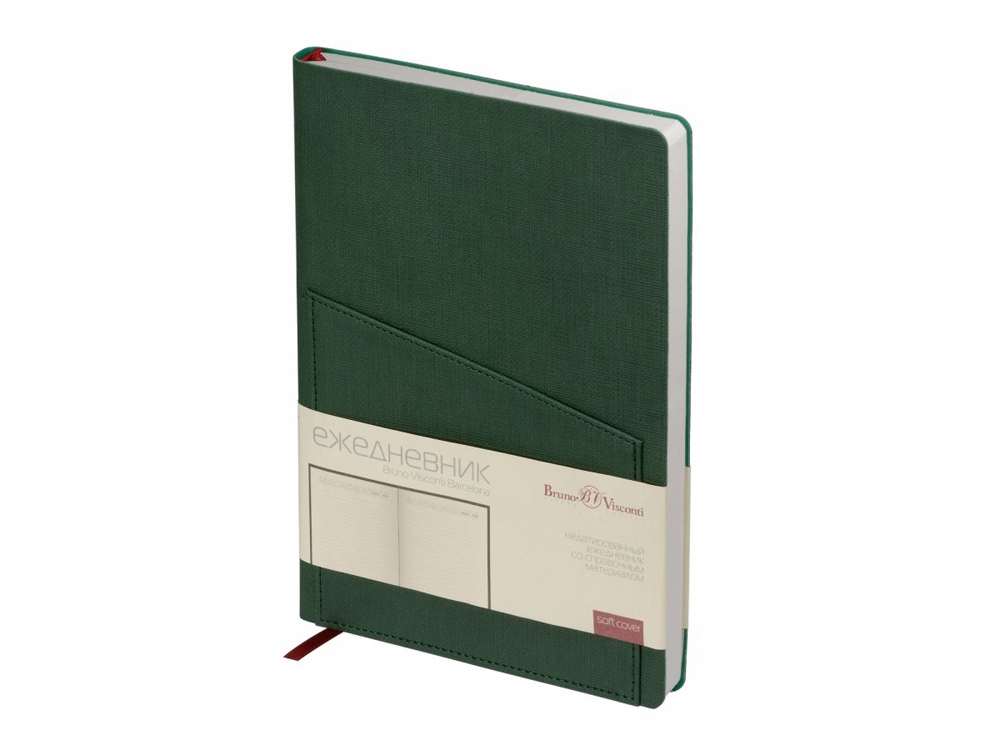 Это ежедневник предназначен для тех, кто отдает предпочтение строгости. Телефон, ручка, визитки и листы для записей будут всегда под рукой благодаря удобному карману на фронтальной стороне. В недатированном ежедневнике Barcelona зеленого цвета используется белая бумага плотность 70 г/м. Ляссе благородного бордового цвета сочетается с обложкой. Скругленный угол - фирменная особенность ежедневников Bruno Visconti. Справочная информация на 8 страницах. Ежедневник Barcelona упаковывается в картонный полукороб и термопленку.