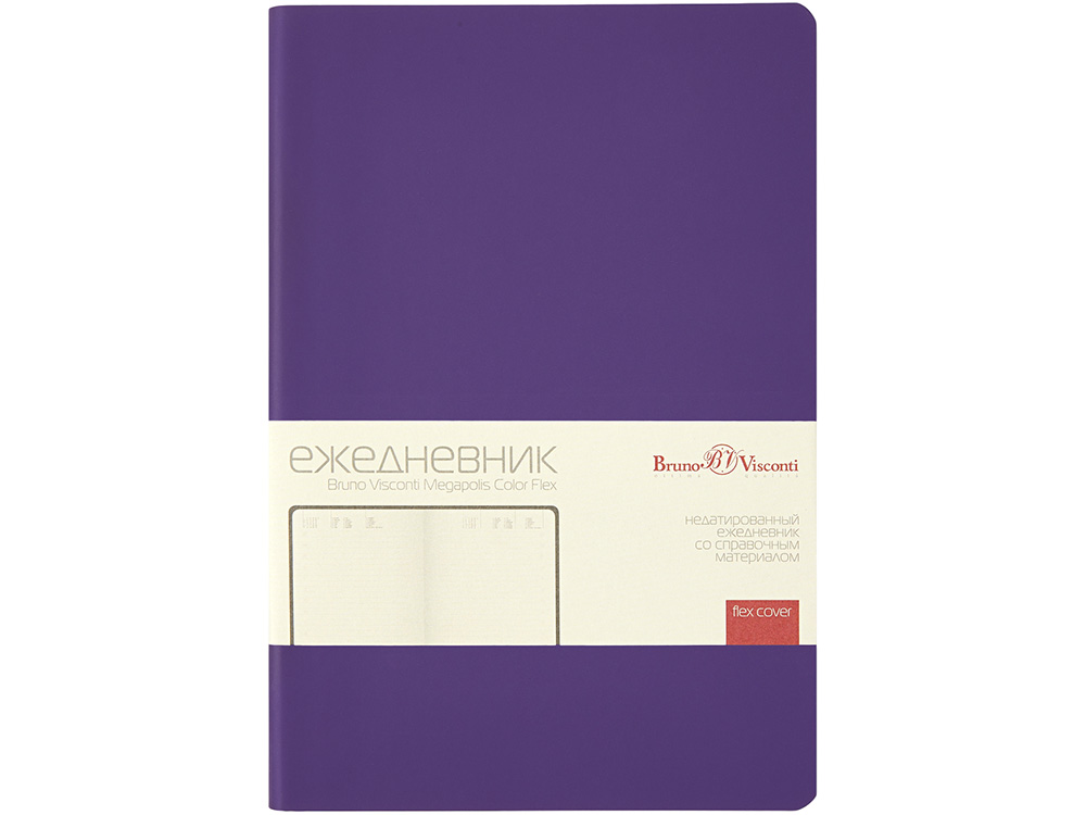 Стильный и современный, практичный и удобный, недатированный ежедневник Megapolis Color Flex от Bruno Visconti для планирования рабочего времени и ведения деловых записей. Гибкая обложка изготовлена из искусственной кожи с soft touch покрытием. Обрез выполнен в цвет обложки ежедневника. Блок состоит из 272 страниц бежевой бумаги, обладающей плотностью 70 г/кв.м. Для удобства навигации предусмотрена закладка-ляссе шириной 7 мм в цвет обложки. Справочный блок на 12 страницах содержит полезную информацию из различных областей. Ежедневник выпускается в формате А5.