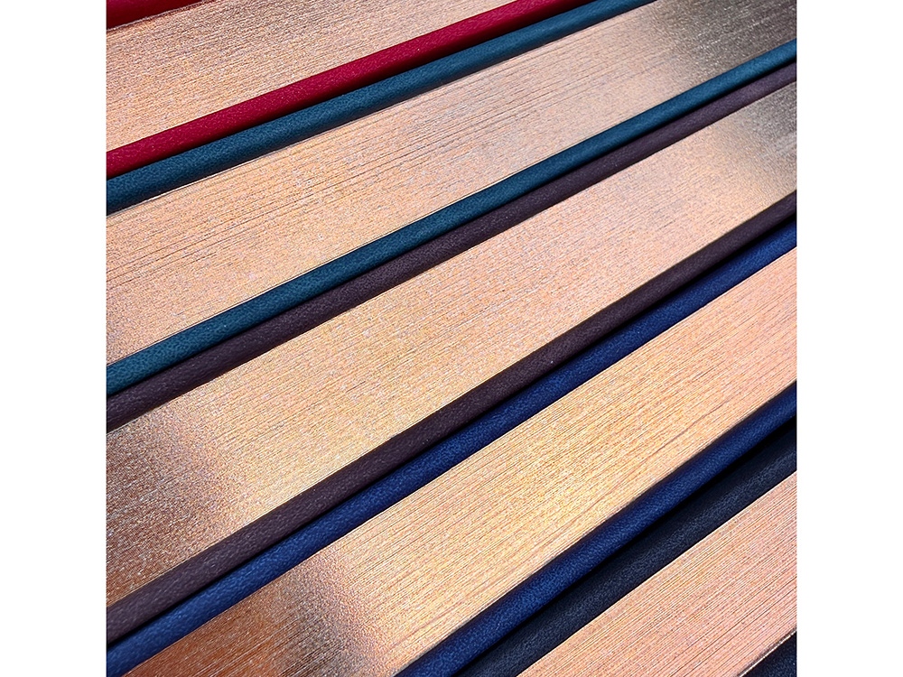 Недатированный ежедневник Royal формата А5 с твердой обложкой из искусственной кожи с имитацией нубука украшен художественным бронзовым и блинтовым тиснением. Внутри 256 страниц, выполненных из качественной бежевой бумаги в линейку плотностью 100 г/м². Два шелковых ляссе в цвет обреза блока и обложки облегчают навигацию по записям. Французский корешок дополнительно декорирован изящным бронзовым тиснением в виде виньеток. Скругленные углы обложки и блока подчеркивают стильный дизайн изделия, а блеск бронзового обреза дарит ежедневнику благородный и роскошный внешний вид.