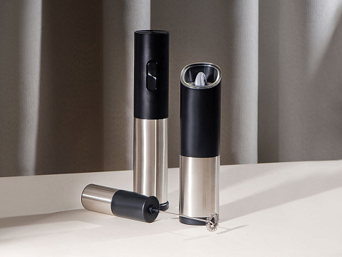 Электрический штопор RIOJA бренда Master of Wine — прекрасный подарок любителю вина: эта модель поставляется в комплекте с подставкой, которая также может выступать в роли ножа для фольги. Благодаря устойчивой и функциональной подставке штопор всегда будет под рукой, а внешний вид Rioja станет настоящим украшением барной стойки или кухни. Верхняя часть корпуса выполнена из матового пластика, который легко очищается от загрязнений влажной тканью. Тактильно приятный текстурный материал для удобства использования. Кнопки спуска и поднятия штопора визуально выглядят как одна большая кнопка, при нажатии на нижнюю часть которой спираль вкручивается в пробку по часовой стрелке, а при нажатии на верхнюю — освобождает пробку, вращаясь в противоположном направлении. От пользователя требуется лишь правильно расположить штопор на пробке и нажать на кнопку. Модель работает от 4 батареек АА, не имеет внутреннего аккумулятора. Батарейки не прилагаются в комплекте. - подставка с функцией ножа для фольги в комплекте - легко откупоривает вино - эргономичное строение: спираль полностью спрятана в корпусе, что обеспечивает долгий срок службы и защищает от порезов по неосторожности - дизайн продолжает общий стиль Master of Wine, можно сочетать с другими товарами бренда для создания сета - украсит собой любую кухню, благодаря подставке можно разместить удобным образом - понятная инструкция на русском языке в комплекте Rioja предназначен для пробок диаметром 20-24 мм и высотой до 44 мм. Внешний диаметр горлышка бутылок не должен превышать 35 мм, внутренний — быть в диапазоне от 17,5 до 23 мм.
