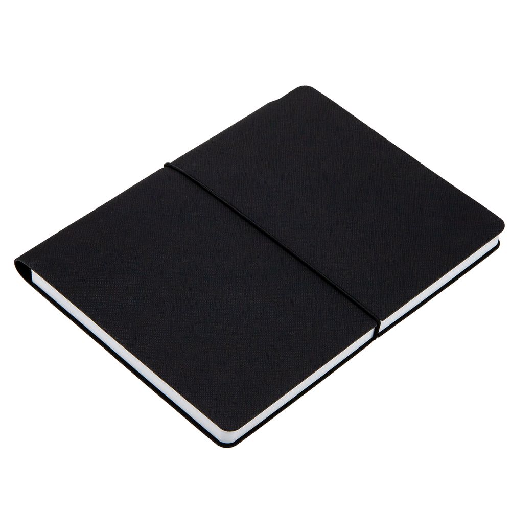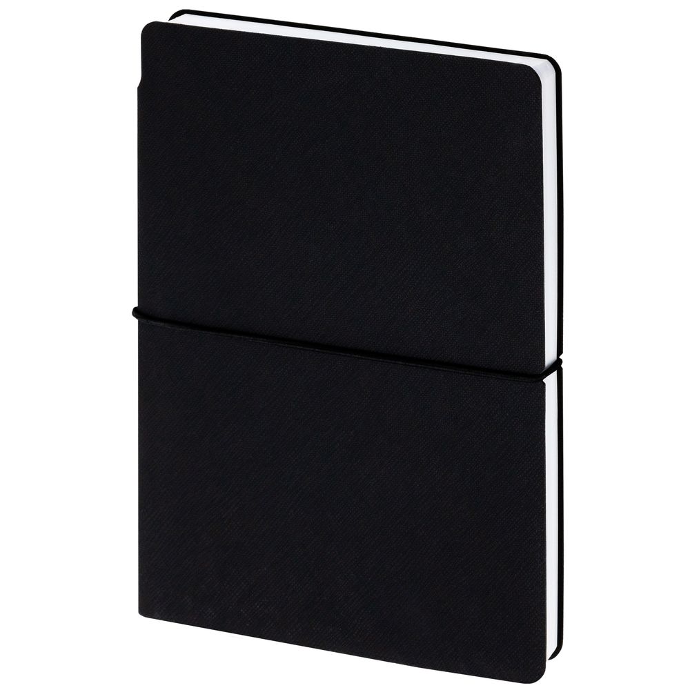 Ежедневник с гибкой обложкой выполнена из материала Nice Touch, черный и Latte, черный (внутренняя часть обложки), дополнен горизонтальной резинкой в цвет обложки. Внутри корешка — специальное место для крепления ручки размером до 15х1 см.