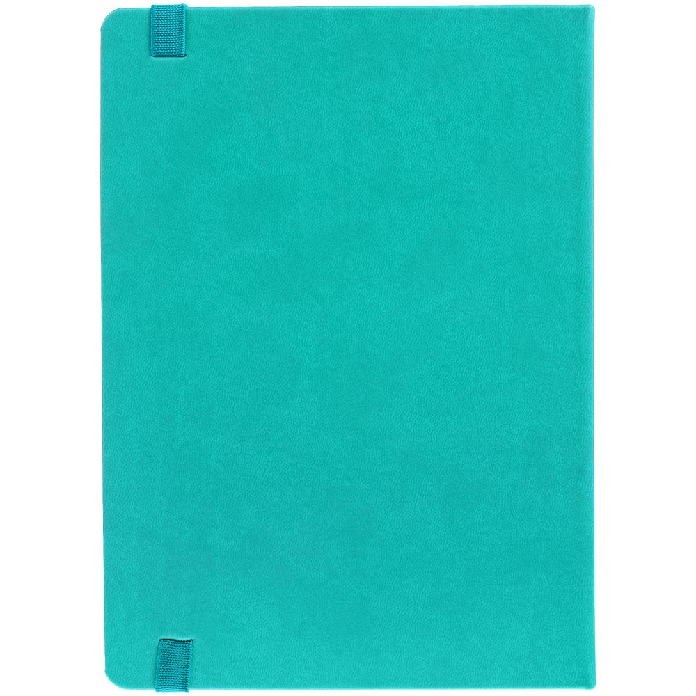 Ежедневник с твердой обложкой, выполнен из материала Latte, цвет морской волны II, обрез бирюзового цвета, дополнен ляссе бирюзового цвета и резинкой с металлическим шильдом.