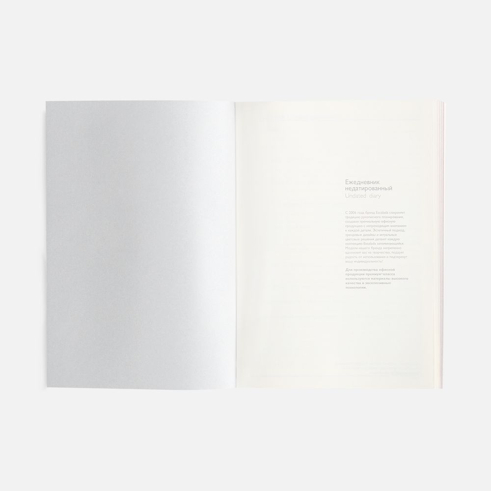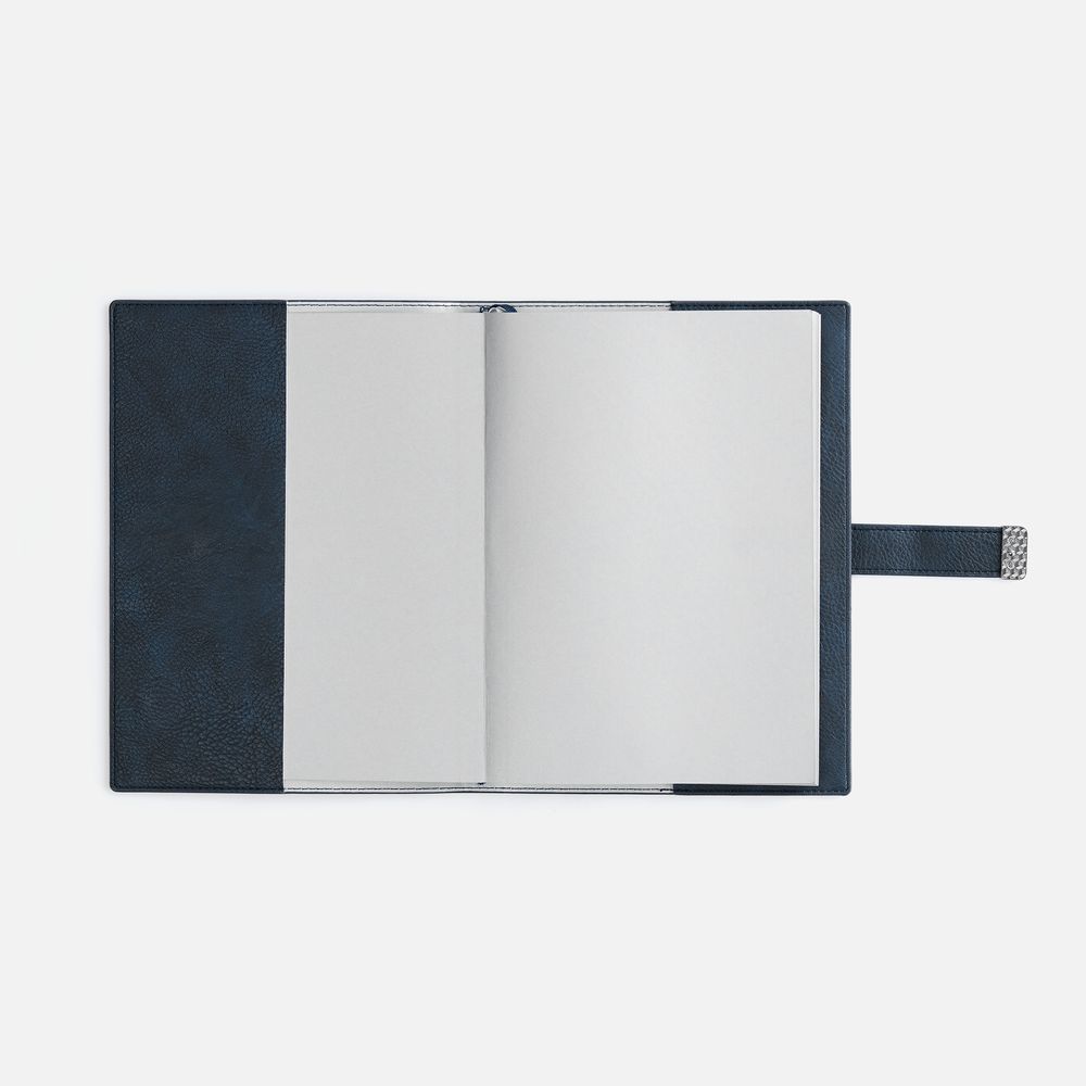 Ежедневник в мягком переплете со съёмная обложкой, дополнен застёжкой-хлястиком  с металлическим шильдом на кнопке, двойным ляссе и капталом.