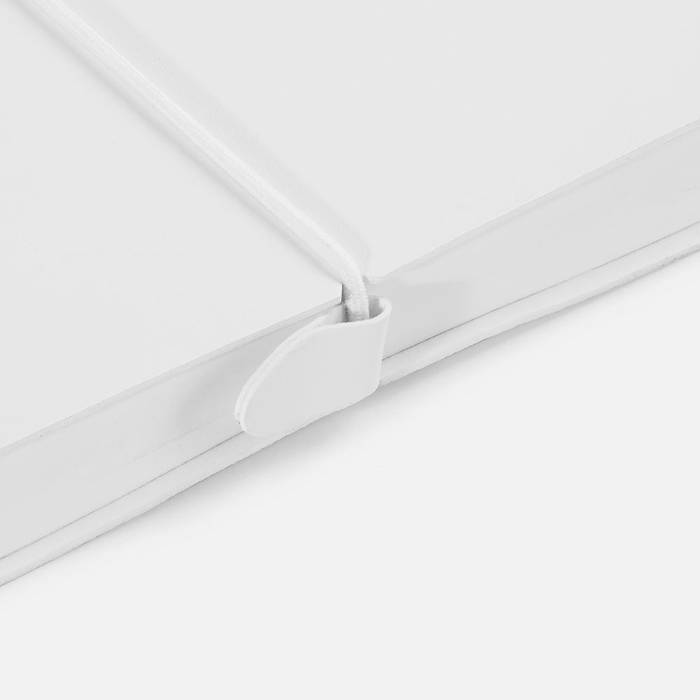 Ежедневник с гибкой обложкой, выполнен из материала Waltz, белый BB, дополнен ляссе в цвет обложки с металлическим шильдом.