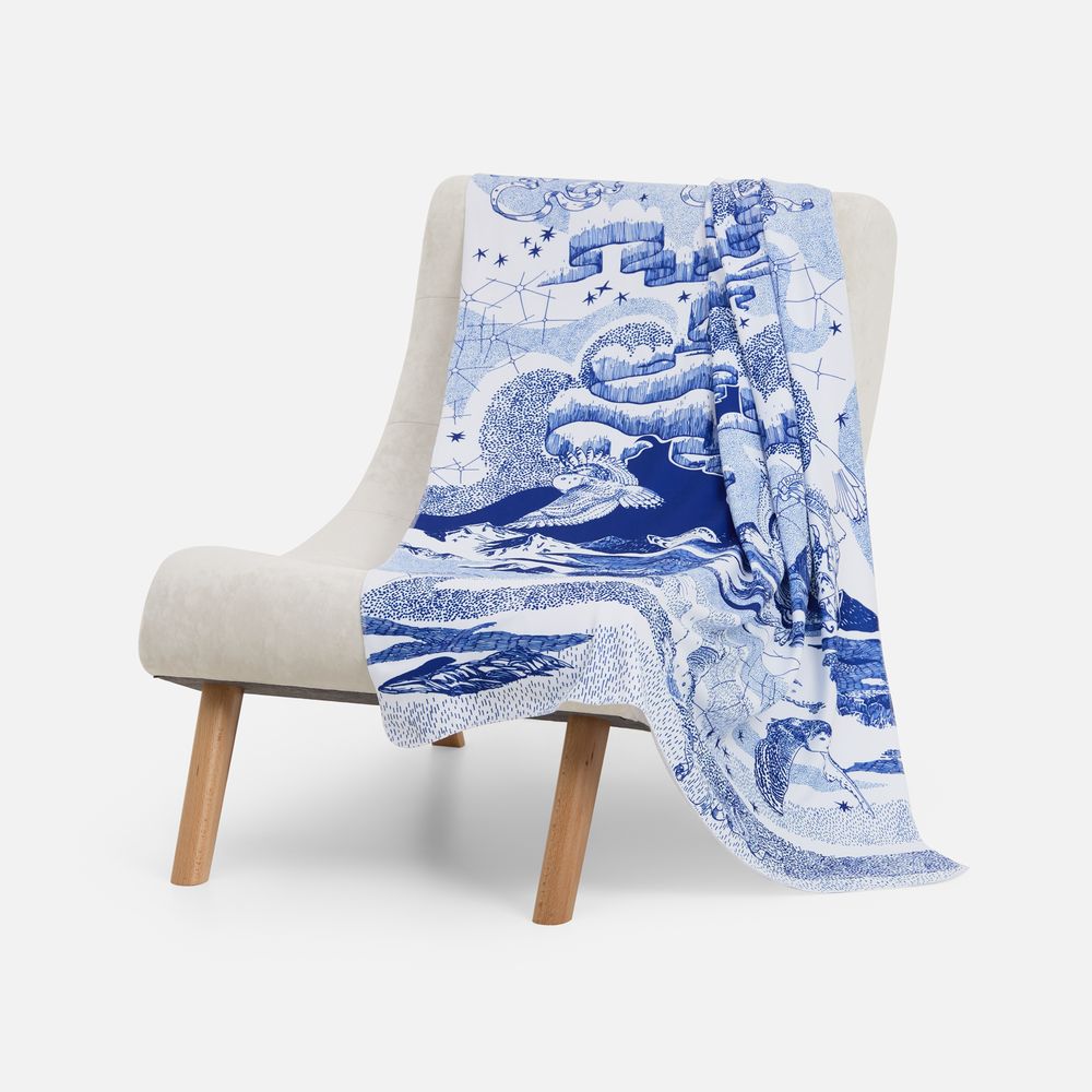Оформление этого пледа — тоже отдельная магия, где тончайшими линиями, словно чернилами, расписано полотно. Так создается целый сюжет с чарующей историей, после которой обязательно захочется сказать: «Волшебство повсюду».
