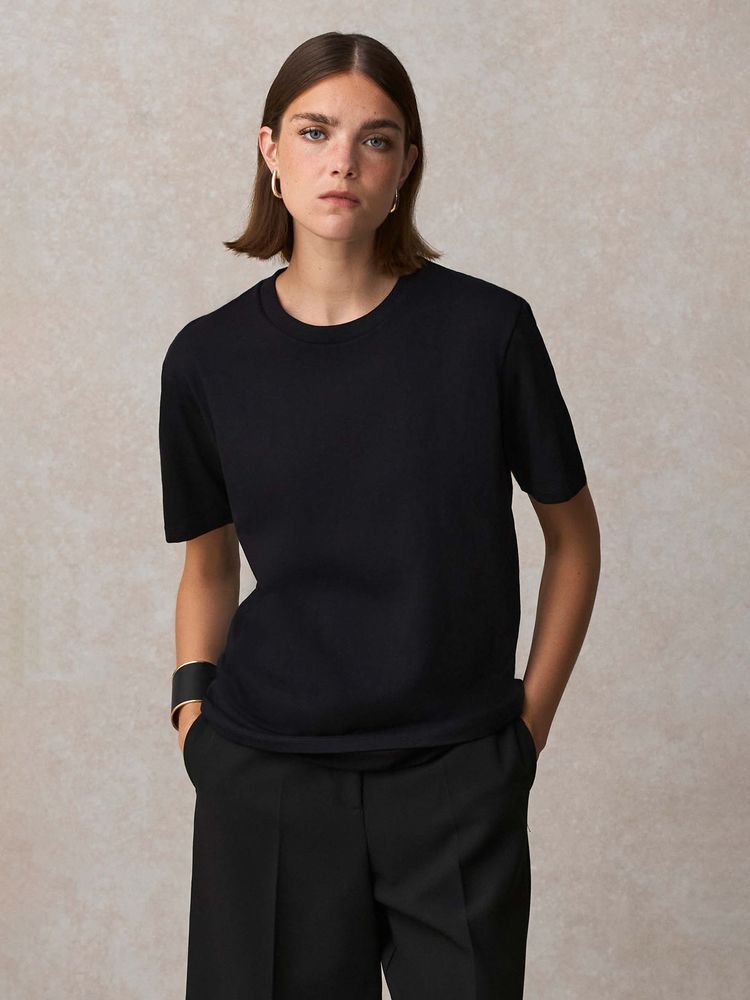За счет идеальных пропорций гребенного хлопка и переработанного полиэстерав составе, а также благодаря дополнительным обработкам полотно обладает повышенной мягкостью, шелковистостью и очень приятно на ощупь. Кроме того футболка меньше мнется, не теряет форму после стирок и обладает высоким показателем Qmax — коэффициента мгновенной теплопроводности, который показывает, как быстро ткань забирает тепло от кожи. Именно он обеспечивает ощутимый эффект свежести и прохлады при первом прикосновении к ткани.