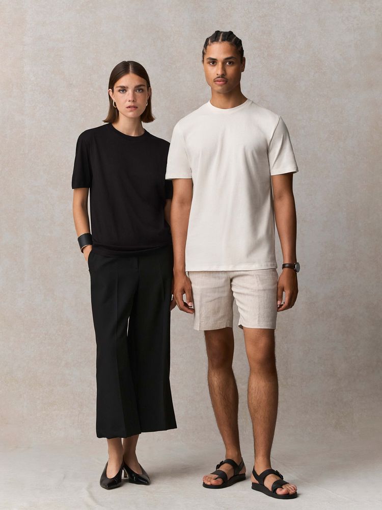За счет идеальных пропорций гребенного хлопка и переработанного полиэстерав составе, а также благодаря дополнительным обработкам полотно обладает повышенной мягкостью, шелковистостью и очень приятно на ощупь. Кроме того футболка меньше мнется, не теряет форму после стирок и обладает высоким показателем Qmax — коэффициента мгновенной теплопроводности, который показывает, как быстро ткань забирает тепло от кожи. Именно он обеспечивает ощутимый эффект свежести и прохлады при первом прикосновении к ткани.