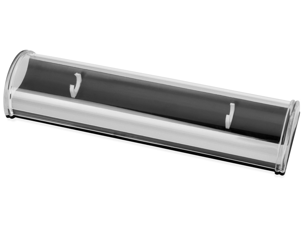 Удобный пластиковый футляр для одной ручки оснащен прозрачной крышкой и небольшими держателями. Футляр позволит оформить ручку в качестве подарка. На поверхность футляра можно нанести логотип и наименование организации. Размер колец под ручку 9 мм, подходит для ручек до 15,8 см