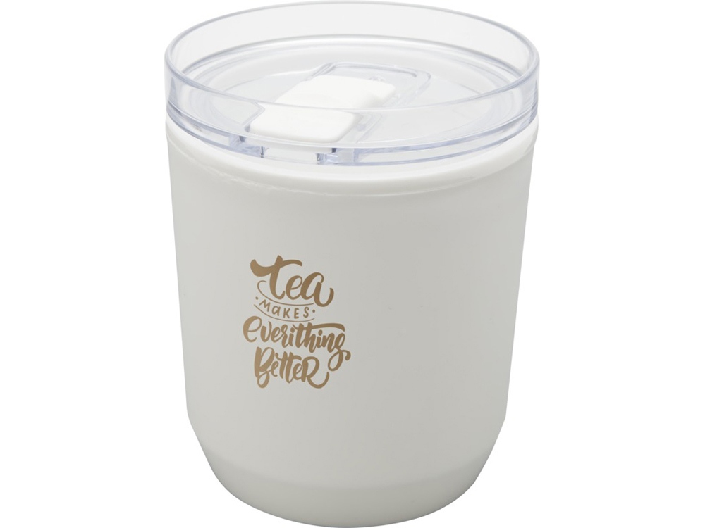 Кружка с простым дизайном, подходящая для большинства кофемашин и автомобильных подстаканников. Имеет двойную конструкцию из переработанного пластика PP снаружи и пластика PP внутри. Раздвижная крышка изготовлена из пластика AS и PP. Объем: 180 мл. Recycled Plastic.