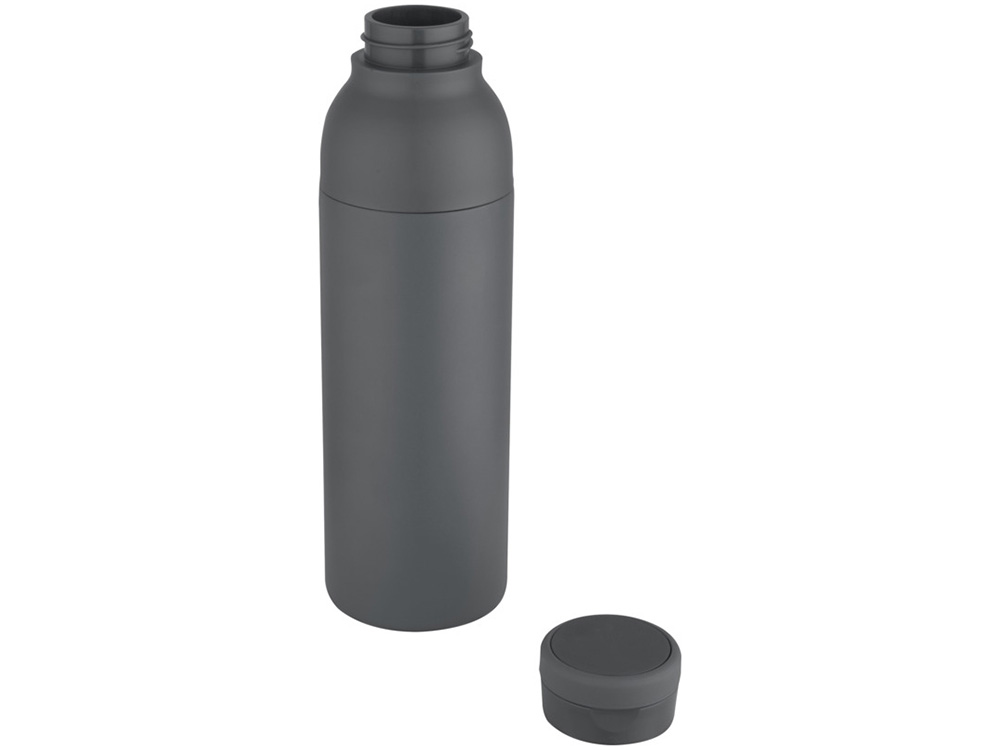 Бутылка для воды с двойными стенками, вакуумной изоляцией, из нержавеющей стали сертифицированной согласно RCS, с незаметной встроенной в крышку силиконовой ручкой. Двухкомпонентная конструкция облегчает простую очистку, а прочное порошковое покрытие и медное покрытие гарантируют долговечность. Поставляется в подарочной коробке из переработанного картона. Объем: 650 мл. 80% Нержавеющая сталь из переработки, сертифицированная RCS, 10% Пластик PP, 10% Силиконовый Пластик. упаковка FSC Mix Credit P5.1 CU-COC-877277.