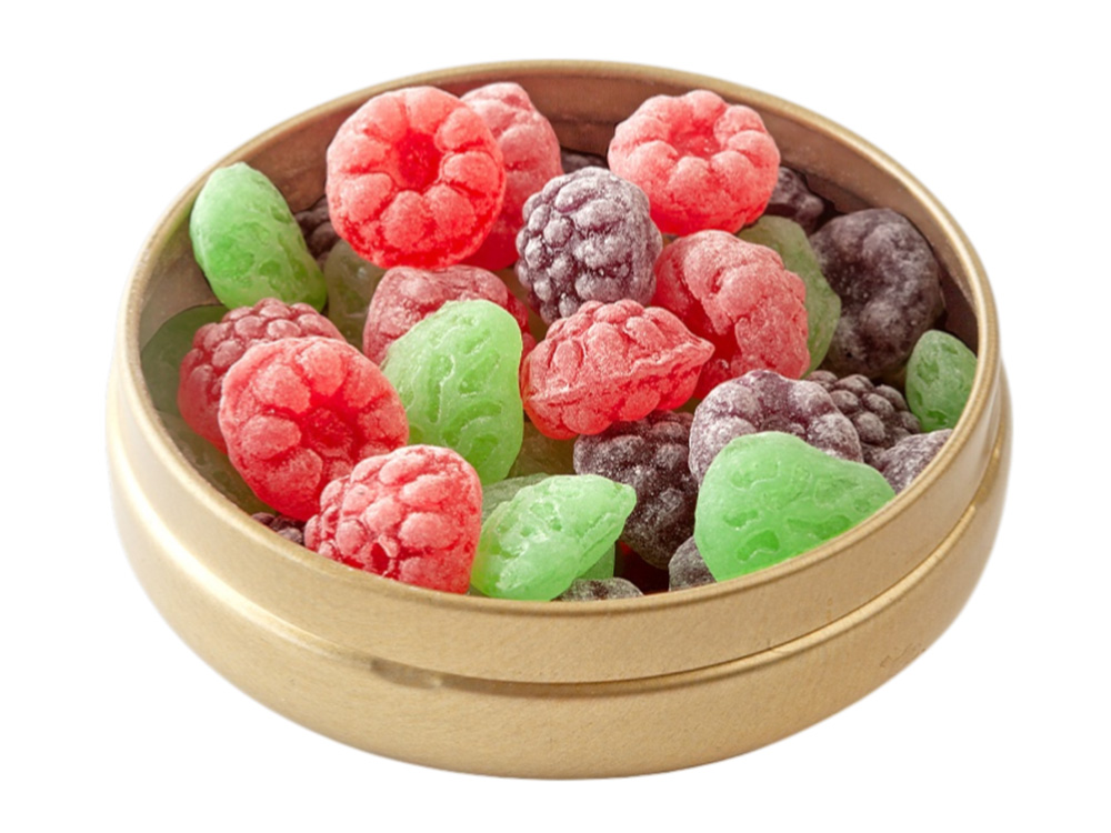 Натуральная и необычная карамель со вкусом малины, смородины, яблока и апельсина в одной баночке. Данные леденцы имеют превосходное качество и каждый раз напоминают прекрасный вкус лета. Баночка весьма компактна, что позволяет поместить её в любой карман. Разработана по немецкой технологии. Состав: патока, вода, регуляторы кислотности (лимонная кислота, молочная кислота), ароматизаторы, идентичные натуральным, краситель: аннато, сахар.