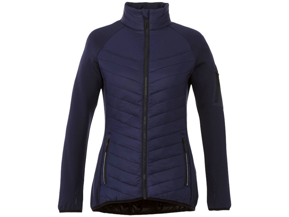 Женская утепленная куртка Banff. Внутренний противоветровой клапан и защита подбородка. Внутренний выход для медиапроводов. Удлиненная задняя часть изделия. Швы моделирующие фигуру и приталенный крой (женская модель).Манжеты-резинки контрастного цвета. Отделка контрастной тканью. Молния с контрастной лентой. Молния легкого скольжения. Петелька-вешалка. Комфортный ярлык-трансфер на изделии. 100% нейлоновая тканая матовая отделка 380T, водоотталкивающая и пухонепроницаемая ткань. Контрастная ткань: 94% полиэстер, 6% эластан с водоотталкивающей поверхностью. 38 г/м².