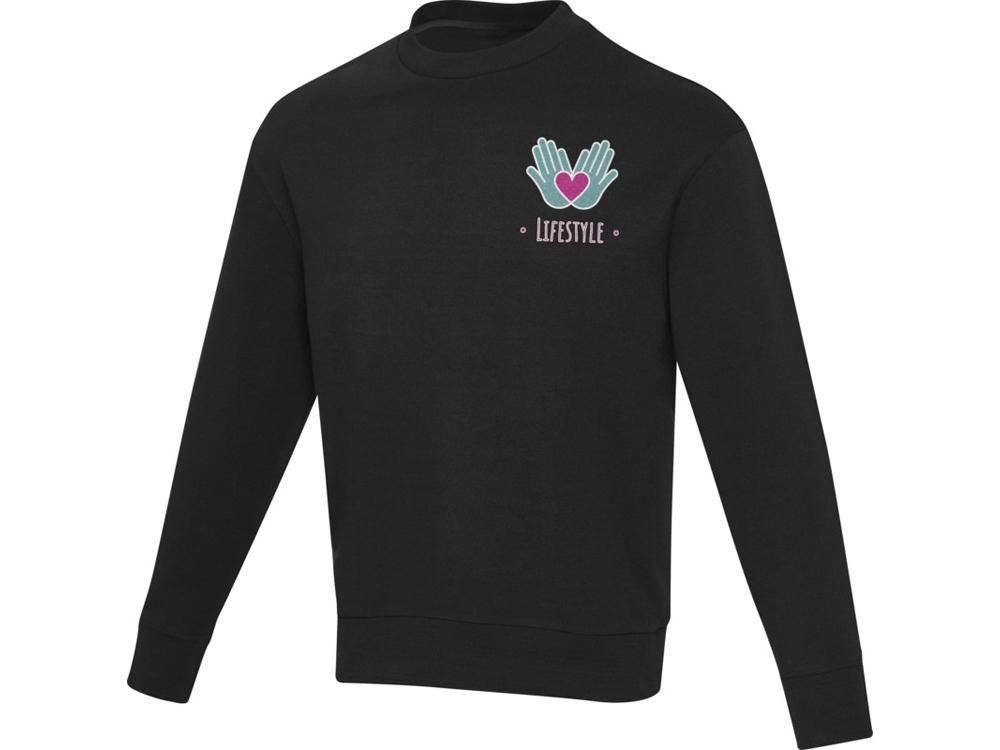 Jet унисекс Aware™ свитер с круглым вырезом из переработанных материалов - сплошной черный купить оптом и в розницу с нанесением логотипа в Воронеже