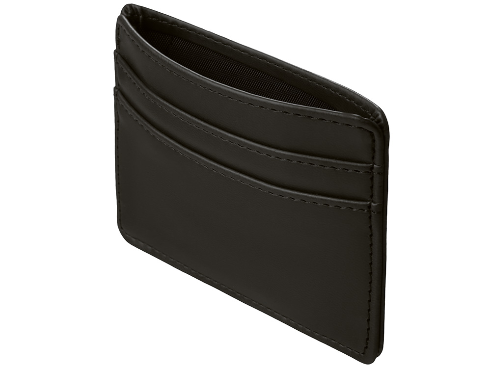 Картхолдер — стильное и практичное решение для деловых людей. В отличие от классических кошельков и портмоне он занимает совсем немного места и с лёгкостью поместится в карман. Данная модель благодаря зажиму на обороте также удобно цепляется за ремень джинс или на ланъярд. Картхолдер вмещает две карты и имеет отделение для купюр. Чтобы ещё больше порадовать клиентов, картхолдер можно вручить не пустым, а вложив в него что-нибудь полезное, например, скидочную карту или свою визитку, чтобы ваши контакты всегда были под рукой. Строгий и лаконичный дизайн Функциональный бизнес-подарок