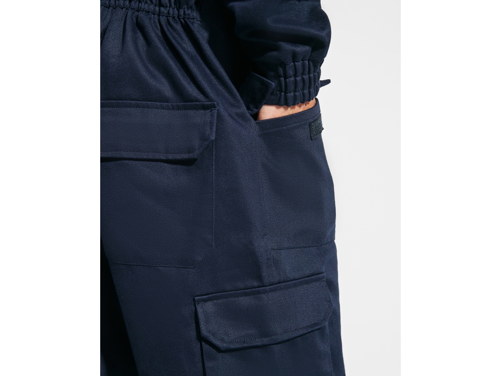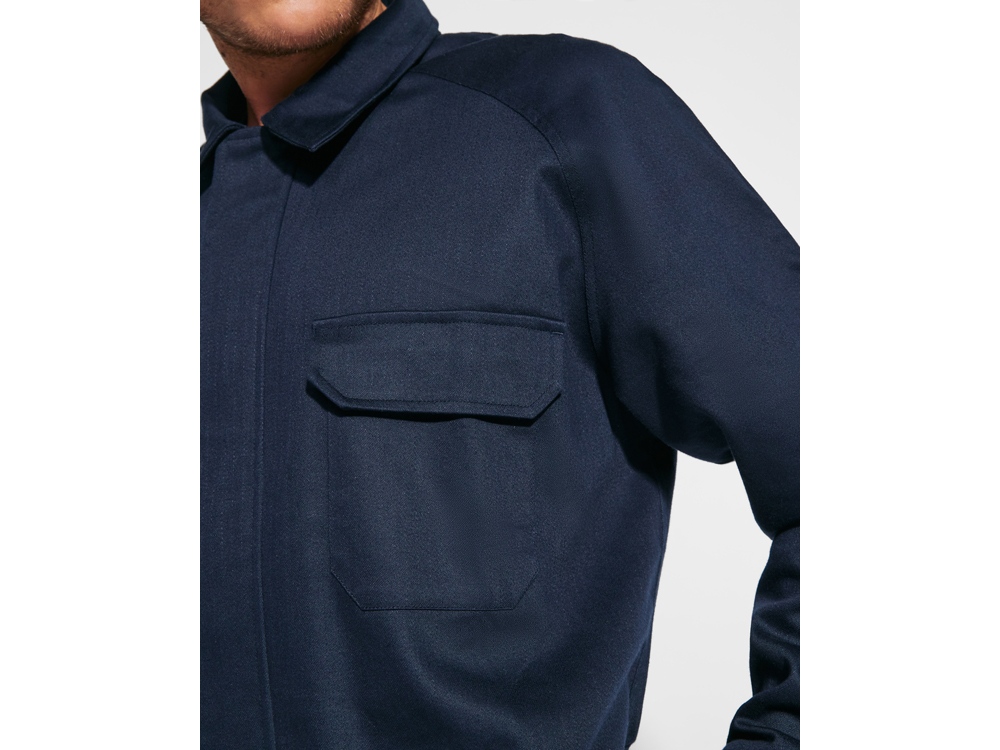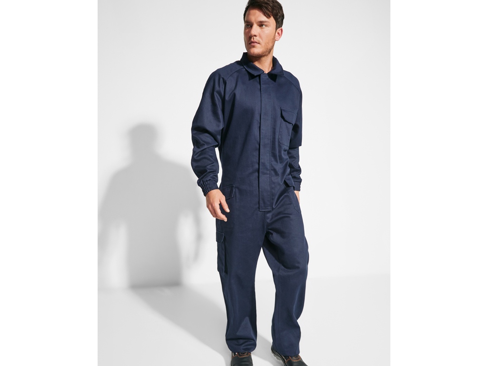 Прямой комбинезон. · Передний разрез с застежкой·молнией и застежкой·липучкой. · Левый нагрудный карман с клапаном и застежкой·липучкой. · Два боковых кармана с клапаном и застежкой на липучке. · Один боковой карман с клапаном и застежкой на липучке. · Регулируемые манжеты. · Задний карман с клапаном и липучкой. · Ткань с защитой от повышенных температур