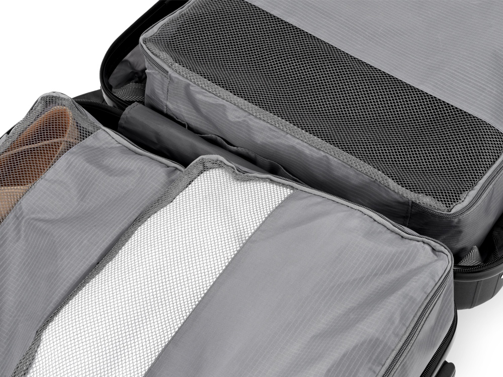 Набор упаковочных сумок – функциональный аксессуар для эргономичного упаковывания различных предметов в багаже. Комплект содержит три чехла разных размеров, удобных для рассортировки и складывания вещей в чемодане или дорожной сумке. • Изделия изготовлены из прочной, но легкой ткани рипстоп и не утяжеляют багаж. • Сумки удобны в пользовании: их верхняя часть полностью откидывается, облегчая упаковывание вещей, и застегивается на молнию. • Сетчатая вставка сбоку позволяет увидеть содержимое, а удобная ручка – вытащить ту из сумочек, в которой находится нужная вещь. • Практичный набор будет полезен не только в путешествии, но и дома для эргономичного хранения вещей в шкафу.