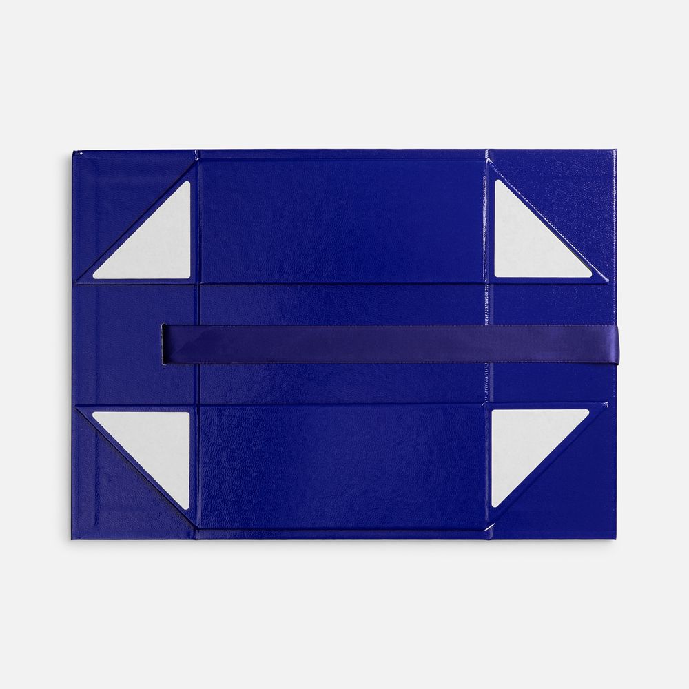 Коробка из переплетного картона с лайнером, ламинированым полуглянцевой текстурной пленкой устойчив к царапинам. Крышка на двух магнитах дополнительно фиксируется репсовой лентой.Толщина картона 2 мм.
