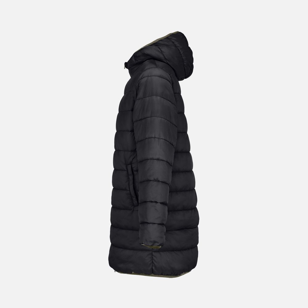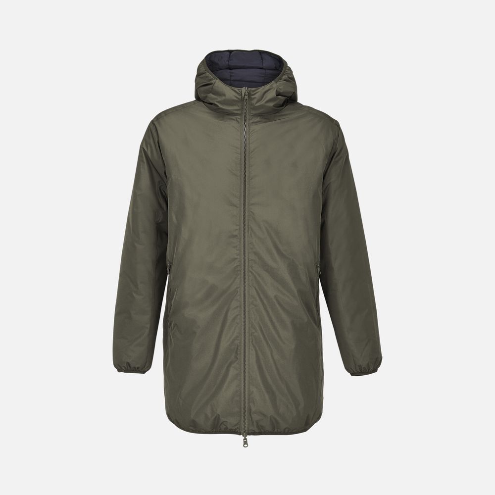 Двусторонняя утепленная парка с капюшоном. Одна сторона гладкая с водоотталкивающим покрытием, другая — стеганая. Стильная, удобная и функциональная, эта парка станет идеальным решением как для подарка, так и для повседневного использования.