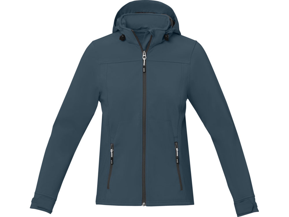 Женская куртка софтшел Ланглей. Стандартный покрой. Отстегивающийся капюшон на шнурках со стопперами. Обратная молния по центру и на карманах для рук. Регулируемые манжеты на липучках. Отражающий лого сзади. Водонепроницаемый 5000 мм. Дышащий 3000 мм. Ткань эластична в четырех направлениях. Ветронепроницаемая. Ремешки на пуллер (второй комплект в цвете антрацит). Ткань из 90% полиэстера и 10% эластана, склеенного со 100% полиэстеровым микрофлисом. 300 г/м².