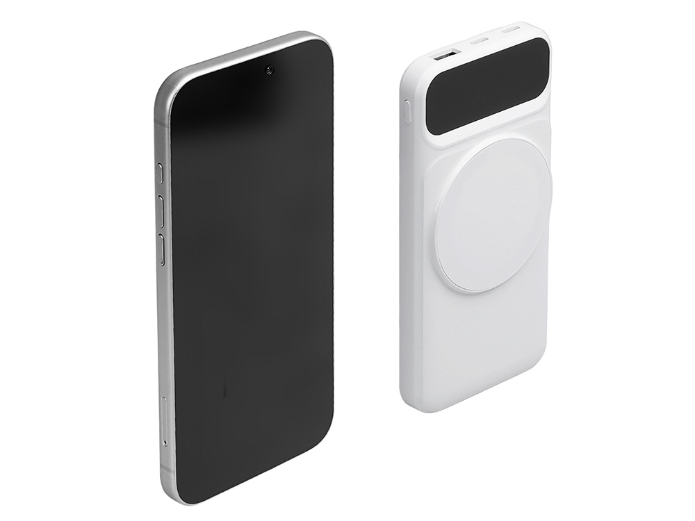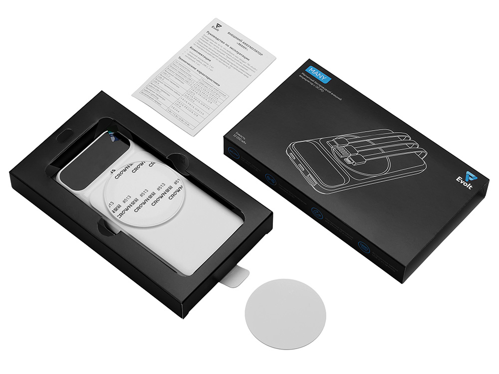 Функциональный и удобный внешний аккумулятор на 10 000 мАч обеспечивает быструю зарядку как по кабелям, так и беспроводным способом, поддерживая современные стандарты скорости. Цифровой дисплей на верхней панели мгновенно показывает точный уровень заряда, а встроенные кабели Lightning, USB-C и входной USB-A устраняют необходимость в дополнительных проводах — всё, что нужно для каждодневного использования, уже есть в самом гаджете. Компактные габариты, сопоставимые с размером смартфона, делают устройство идеальным для путешествий и повседневного использования. Сильные магниты гарантируют надёжное крепление при беспроводной зарядке. В комплекте есть силиконовая накладка: перед использованием удалите защитный стикер и прикрепите её к корпусу. - Встроенные кабели (Lightning, USB-C, USB-A) — не нужно искать дополнительные кабели: зарядка других устройств и подзарядка аккумулятора происходят через встроенные кабели. - Сильные магниты - Цифровой дисплей уровня заряда и статуса зарядки - Функции быстрой проводной и беспроводной зарядки - Упаковка с удобным и быстрым открытием
