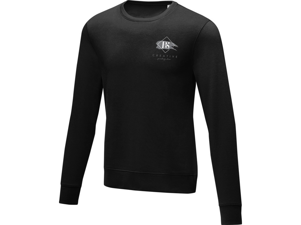 Мужской свитер Zenon с круглым вырезом. Основная этикетка, которую можно оторвать или отрезать, без неудобных пришитых ярлыков. Круглый вырез. Воротник из гладкого трикотажа. С манжетами из гладкого трикотажа в рубчик. С подшивкой из гладкого трикотажа в рубчик. Внутренняя сторона покрыта ворсом. Самоклеящаяся лента на воротнике. Трикотаж 50% Хлопок, 50% Полиэстер, 240 g/m2.