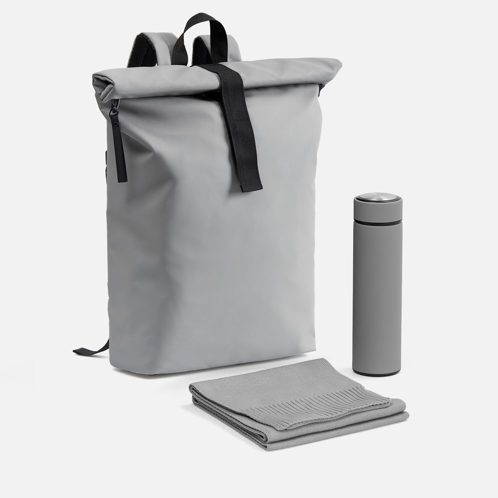 | Материал | рюкзак - полиэстер, 900D, с полиуретановой пропиткой; подкладка - полиэстер; термос - нержавеющая сталь, 304; покрытие софт-тач; шарф - акрил 100% |