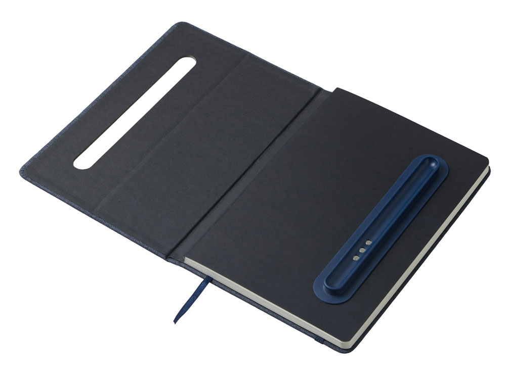 Набор блокнот А5 с магнитным держателем для ручки и подставкой для телефона и металлической шариковой ручкой NotaBene, темно-синий