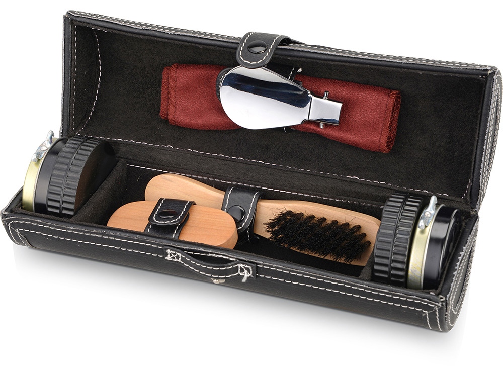 Подарочный набор для чистки обуви включает в себя 8 предметов, которые предназначены для поддержания чистоты вашей обуви. В комплект входят чистящие средства, так что не придется покупать их отдельно. Набор упакован в солидный футляр под кожу, который удобно брать в дорогу, в командировку. Набор представлен также и в других цветах.