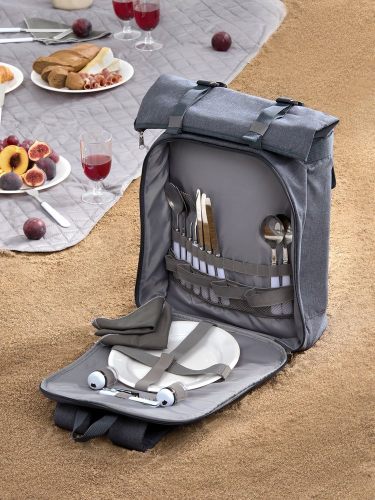 | Материал | рюкзак - переработанный полиэстер, 300D с полиуретановой пропиткой, PEVA; тарелки и бокалы - полистирол; приборы - нержавеющая сталь, пластик |