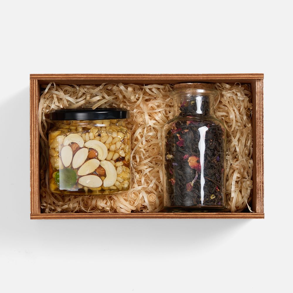 Этот набор станет прекрасным выбором как для бодрого утра, так и для спокойного вечера. Все компоненты представлены в деревянном ящике, что делает набор изысканным подарком для ценителей натуральных вкусов.